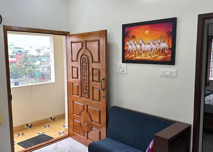 Daire Chennai şehrinin Thiruvanmiyur semtinde yer almaktadır. Arulmigu Marundeeswarar Temple daireden 10 dakikalık, Chennai Uluslararasi havalimanı ise 15 dakikalık sürüş mesafesinde yer alır. Çeşitli yemeklerin servis edildiği Domino's Pizza, Sian, sadece 15 dakika yürüme mesafesindedir. Konaklama tesisi Thiruvanmiyur Plajı'a kısa sürüş uzaklığındadır.